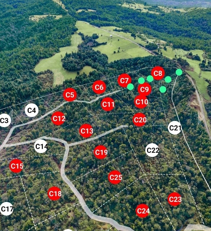 Postación de luz eléctrica muy cerca y agua de vertientes. Parcelas con hermosos arboles nativos y vegetacion, las parcelas en venta son las C – 9 de 5.800 m2 y la C- 11 de 6.700 m2 ( ambas son colindantes ) su precio de venta es de $ 16.000.000 cada una.
